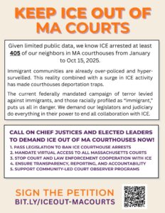 This is a rally at the Waltham court for the ICE out of courts LUCE campaign.